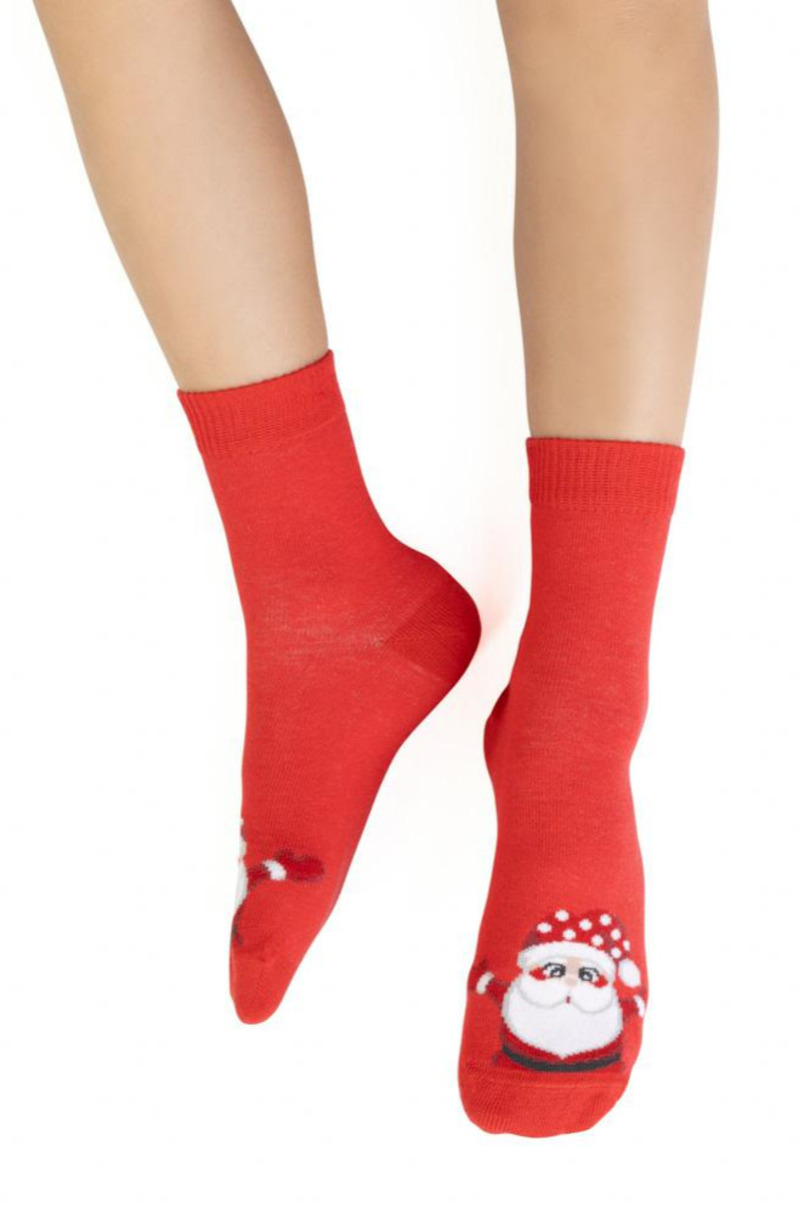 Skarpety okazjonalne z motywami świątecznymi, wykonane z najwyższej jakości bawełny czesanej.