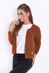 Narzutka-bolerko damskie to elegancki i praktyczny element garderoby, który doskonale uzupełnia zarówno codzienne, jak i bardziej oficjalne stylizacje. Wykonana z niezwykle miłego w dotyku poliamidu, zapewnia komfort noszenia przez cały dzień. Krótki fason z rękawem 7/8 pięknie podkreśla sylwetkę i świetnie komponuje się z sukienkami, bluzkami czy topami. Brak guzików nadaje lekkości, a wszyta w pasie guma z tyłu subtelnie modeluje talię, gwarantując idealne dopasowanie. To ponadczasowy dodatek, który sprawdzi się zarówno na co dzień, jak i podczas wyjątkowych okazji.