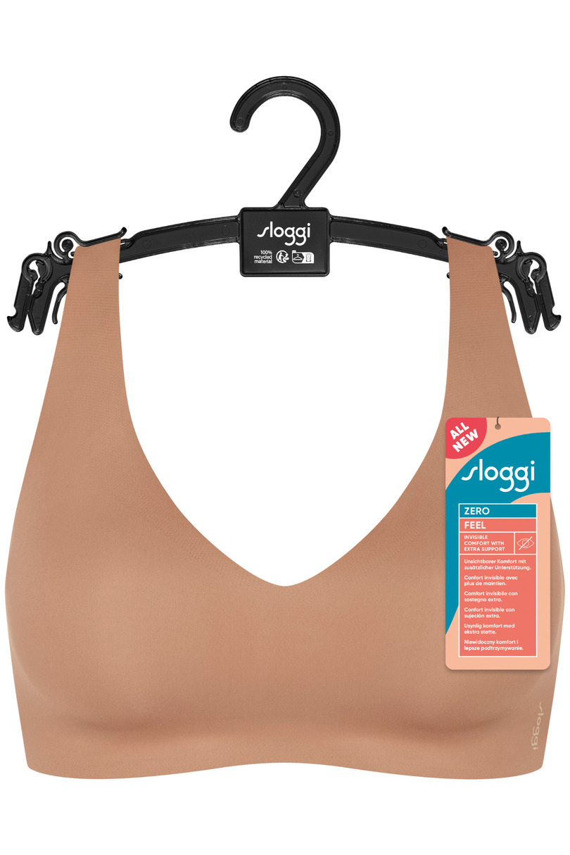 Biustonosz z formowanymi miseczkami z wyciąganymi poduszeczkami sloggi ZERO FEEL SOFT pozwala uzyskać pięknie podkreśloną sylwetkę. Miseczki miękko i gładko podszyte. Wyjątkowo wygodne, szerokie ramiączka. Płasko złapane po bokach, by zapewnić miękką, bezszwową powierzchnię. Dzięki innowacyjnej technologii stanik nie odznacza się pod obcisłymi ubraniami. Plus oznacza że przy takiej samej misce zwiększony jest obwód.