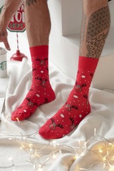 Bawełniane skarpety wzorzyste z motywami świątecznymi.