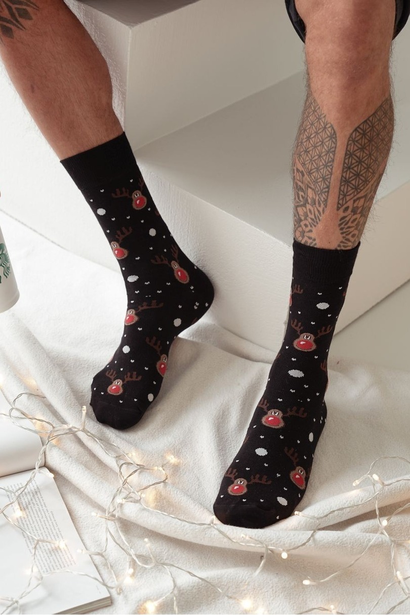 Bawełniane skarpety wzorzyste z motywami świątecznymi dla osób ceniących wygodę. Doskonale sprawdzą się w codziennych stylizacjach oraz jako dodatek do świątecznych prezentów.