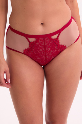 Zmysłowy czerwony biustonosz semi soft z koronką i siateczką, zapewniający idealne podtrzymanie i kobiecy wygląd.