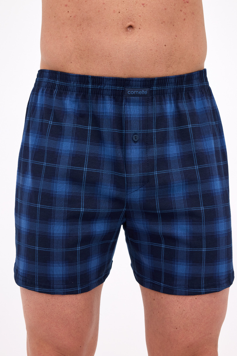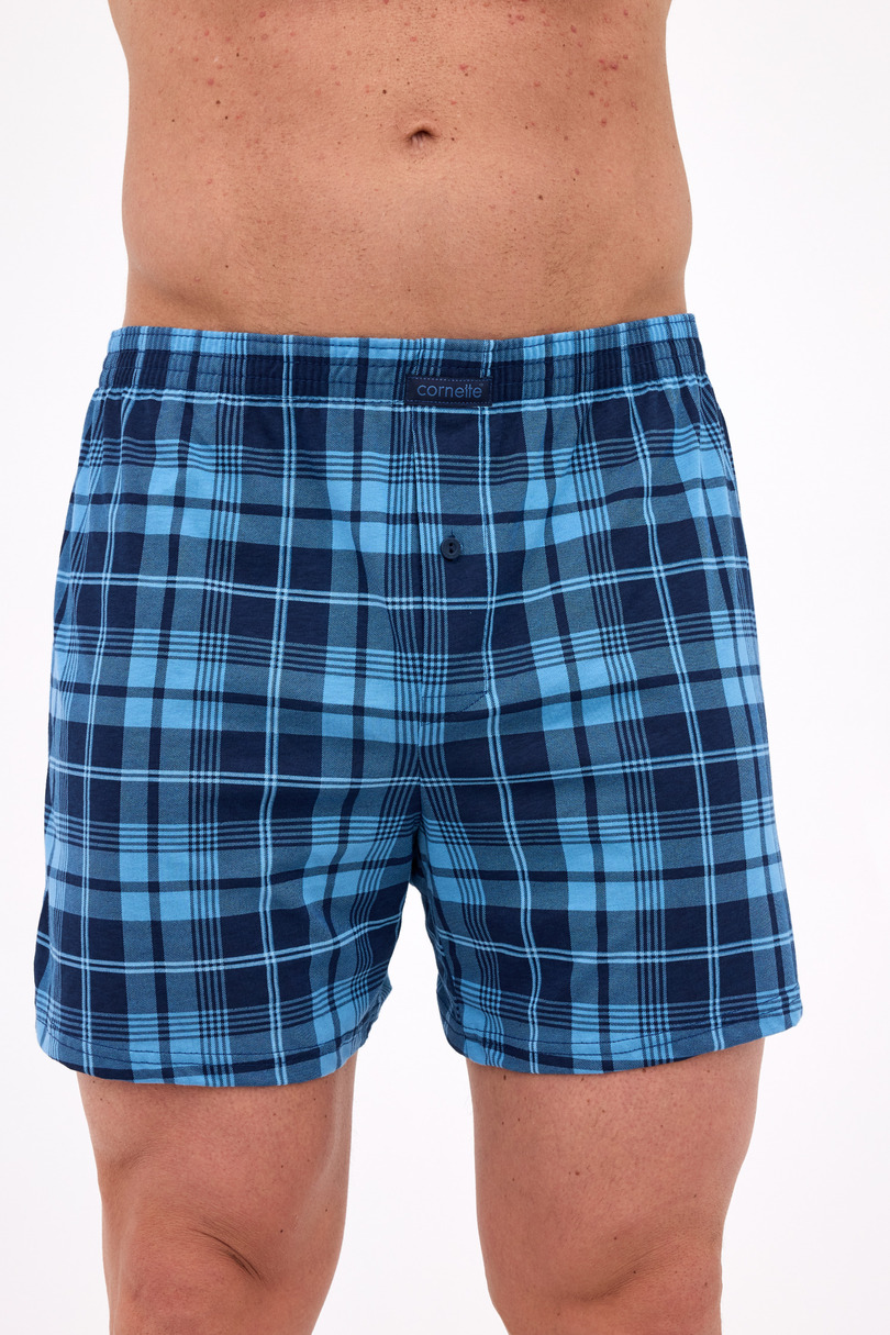 Męskie bokserki Cornette Comfort J/25 w kratkę – 100% bawełna, z rozporkiem na guzik i gumą obszytą bawełną.