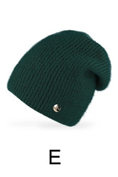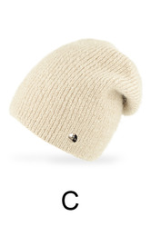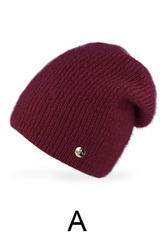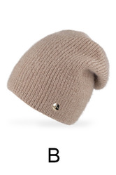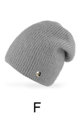 Miękka, wydłużona czapka damska ze ściągaczowej dzianiny, ozdobiona delikatną blaszką. Modna, ciepła i idealna na jesień oraz zimę.