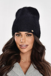Stylowa czapka damska z lekkim wydłużeniem i ciekawym splotem. Wykonana z angory i nylonu – miękka, ciepła i elegancka.