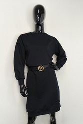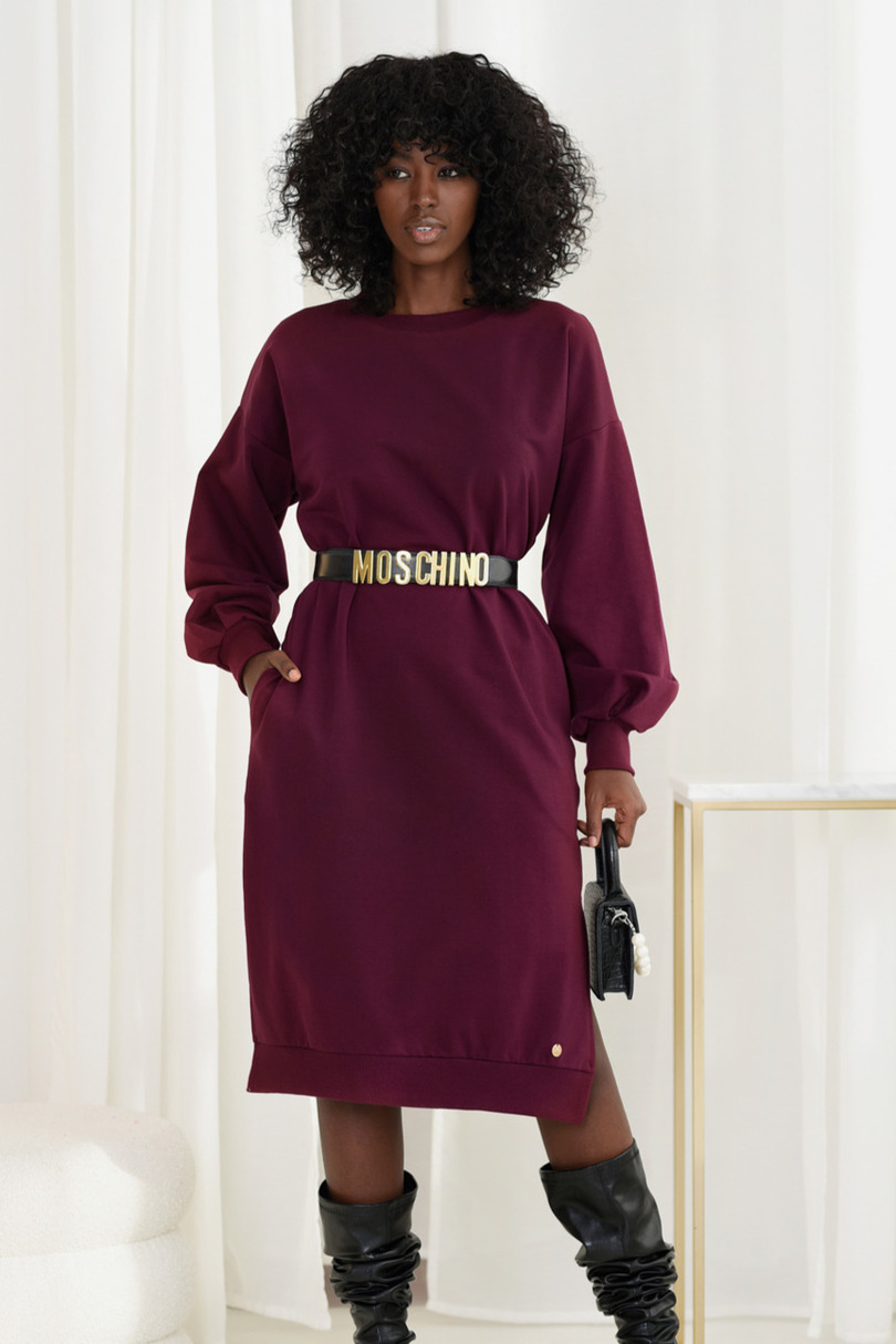 Oversize’owa sukienka dresowa z rozcięciami po bokach, ukrytymi kieszeniami i ściągaczami, idealna do codziennych, komfortowych stylizacji.