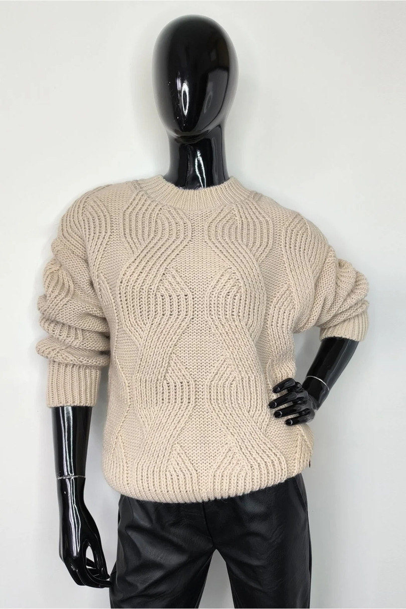 Jego klasyczny krój połączony z lekko oversize’owym fasonem sprawia, że sweter idealnie komponuje się zarówno z codziennymi, jak i bardziej eleganckimi stylizacjami. Gruby, dekoracyjny splot dodaje charakteru, a przyjazny, niegryzący materiał gwarantuje pełen komfort przez cały dzień.