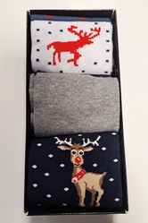 Męski zestaw świąteczny to idealny prezent dla każdego, kto lubi połączenie wygody i świątecznego nastroju. W komplecie znajdują się trzy pary skarpetek: dwie pary w wesołe, typowo świąteczne wzory, które dodadzą humoru i wyjątkowego charakteru zimowym stylizacjom, oraz jedna klasyczna, gładka para skarpet garniturowych – idealna na bardziej eleganckie okazje.