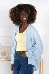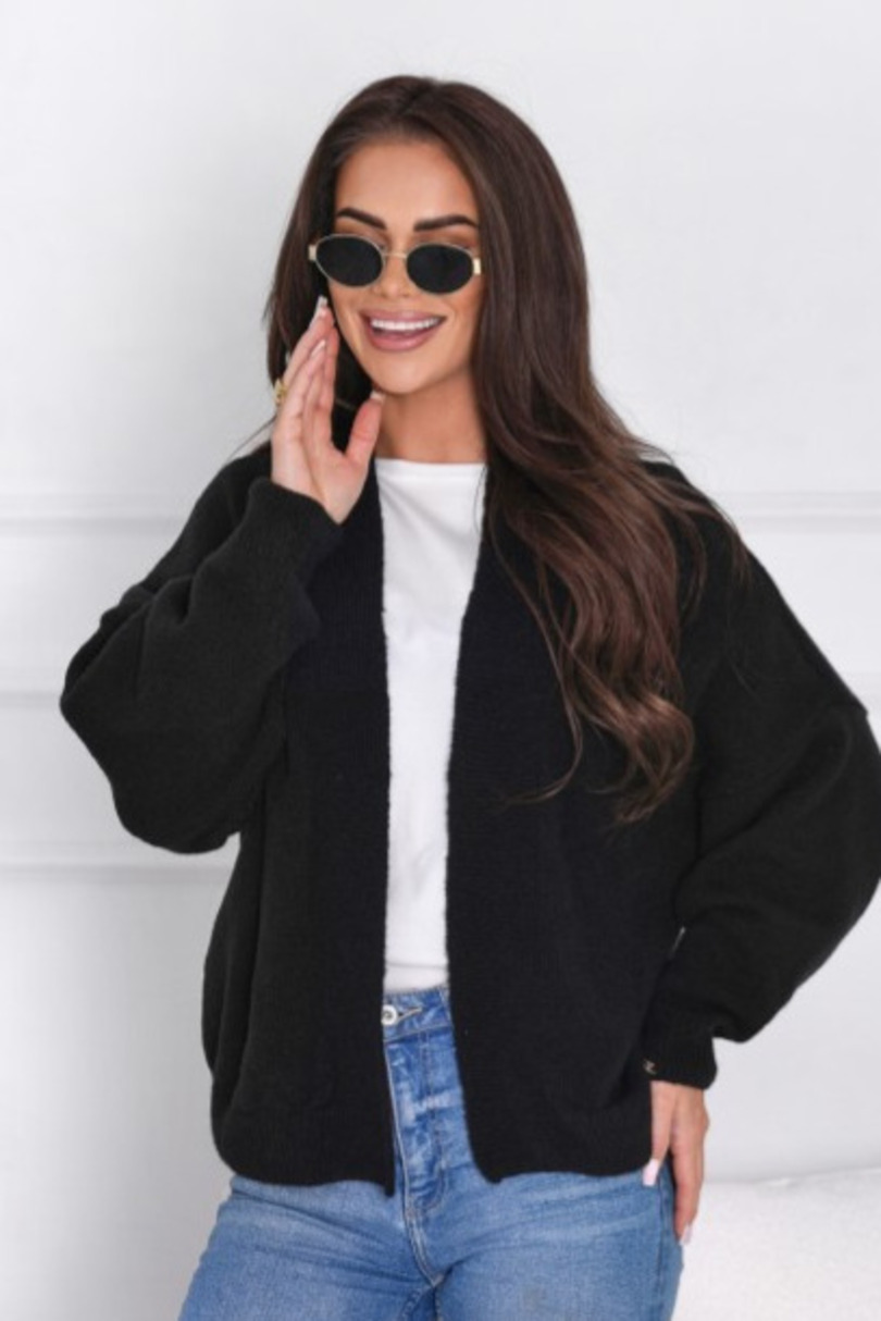 Lekki damski kardigan – narzutka z puszystej przędzy z dodatkiem wełny. Miękki, ciepły i stylowy, idealny na co dzień.