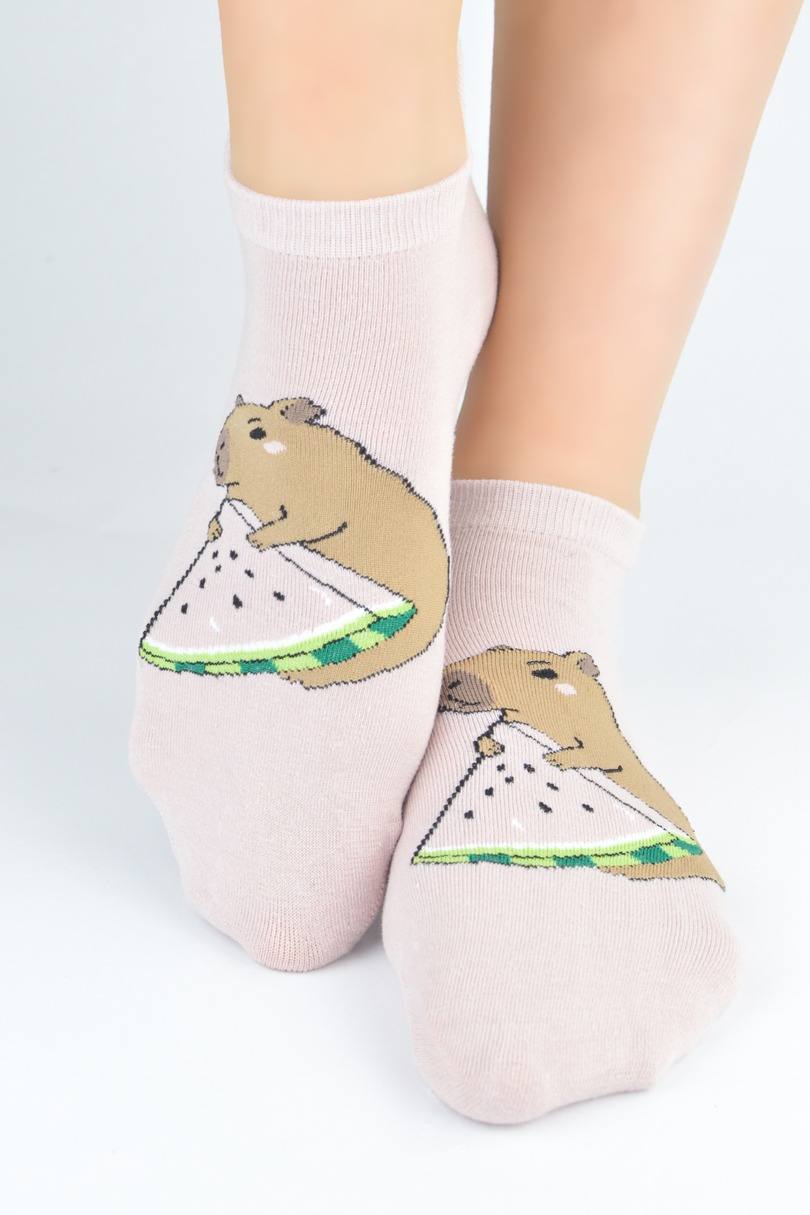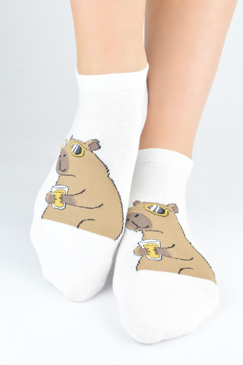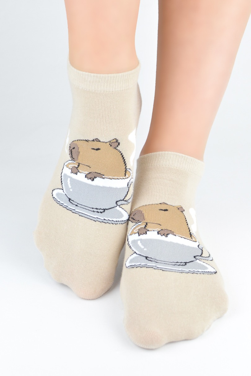Bawełniane stopki NOVITI KAPIBARA ST111 z płaskimi szwami. Wygodne, oddychające i wzorzyste – idealne do codziennego noszenia.