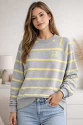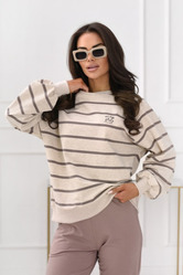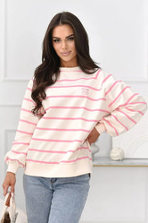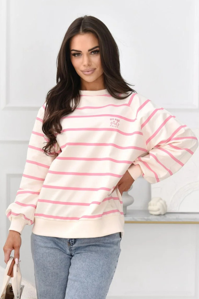 Modna bluza damska Off Pink w poziome pasy o luźnym kroju. Wykonana z miękkiej, oddychającej dzianiny z dodatkiem elastanu. Elastyczne ściągacze i subtelne logo na piersi zapewniają wygodę oraz stylowy, casualowy wygląd.