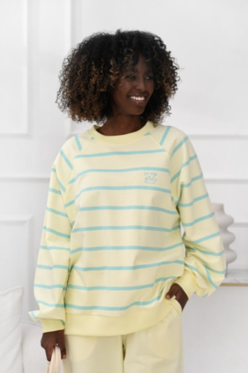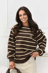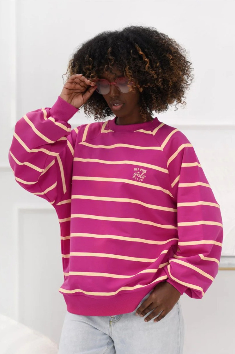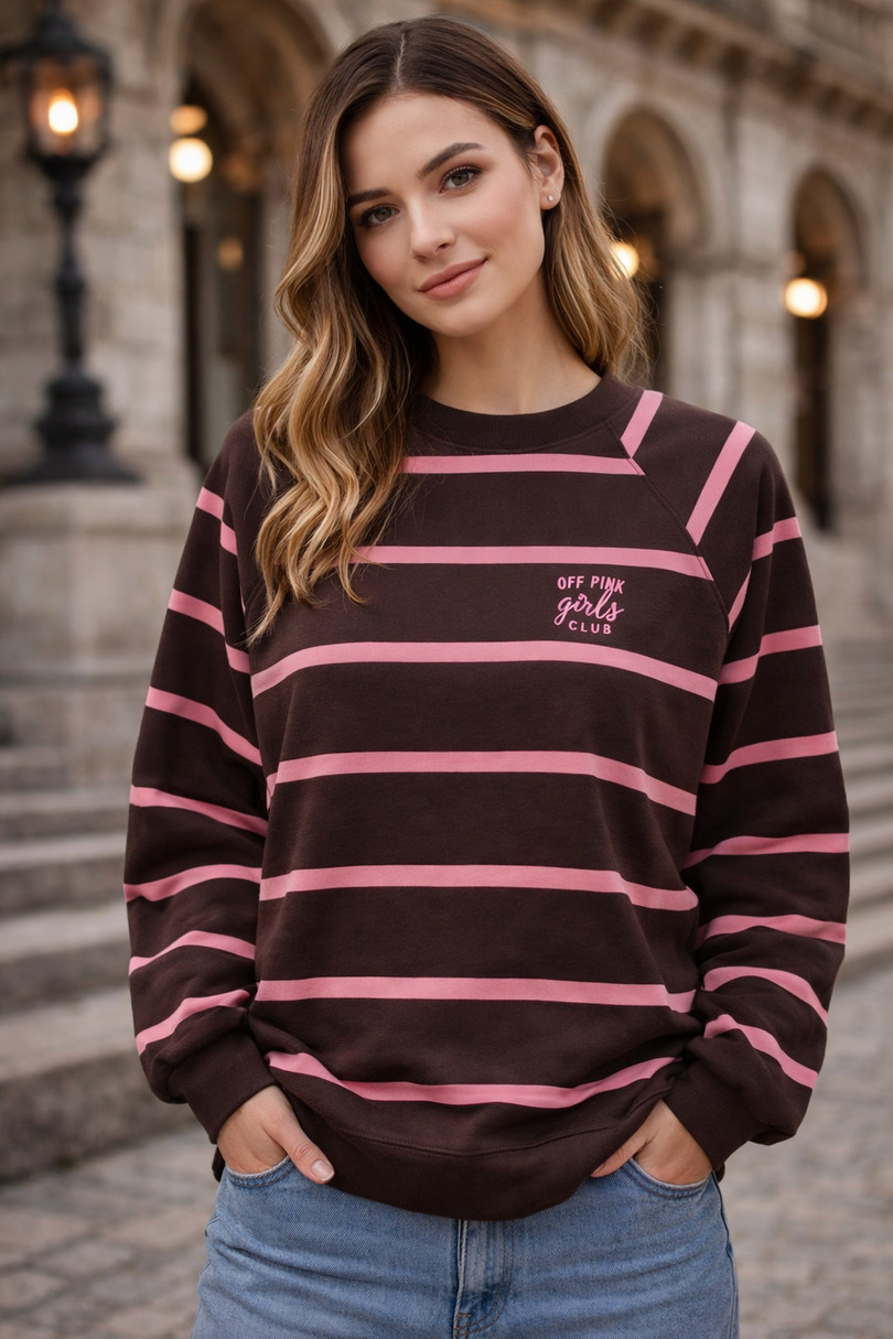Stylowa bluza damska w poziome pasy marki Off Pink to doskonałe połączenie komfortu i ponadczasowego designu. Model o luźnym kroju zapewnia swobodę ruchów i wygodę przez cały dzień, dzięki czemu świetnie sprawdzi się zarówno podczas codziennych aktywności, jak i w casualowych stylizacjach.Bluza została wykonana z miękkiej, oddychającej dzianiny z dodatkiem elastanu, która dopasowuje się do sylwetki i gwarantuje wysoki komfort noszenia. Klasyczny wzór w poziome pasy nadaje jej modnego, uniwersalnego charakteru, a subtelne logo Off Pink na piersi podkreśla styl i oryginalność marki.Model posiada elastyczne ściągacze przy dekolcie, rękawach oraz na dole, dzięki czemu bluza dobrze układa się na sylwetce i zapewnia wygodę przez cały dzień. To idealny wybór do codziennych stylizacji – doskonale komponuje się z jeansami, legginsami oraz spodniami dresowymi. Jeśli szukasz modnej i wygodnej bluzy na co dzień, ten model Off Pink będzie doskonałym uzupełnieniem Twojej garderoby.