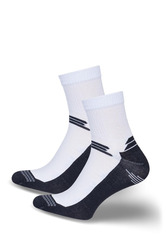 Podkreśl swój sportowy styl i zadbaj o maksymalny komfort podczas aktywności dzięki męskim skarpetom sportowym z oryginalnym wzorem. Wykonane z wysokiej jakości oddychających i elastycznych materiałów, zapewniają doskonałą wentylację oraz idealne dopasowanie do stopy. Skarpety świetnie sprawdzą się podczas biegania, treningu na siłowni, jazdy na rowerze czy codziennych aktywności. Dzięki nowoczesnemu designowi i dynamicznym wzorom stanowią nie tylko funkcjonalny element garderoby sportowej, ale także stylowy dodatek do sportowego outfitu. Elastyczny ściągacz zapobiega zsuwaniu się skarpet, a miękki materiał chroni stopy przed otarciami nawet podczas intensywnego wysiłku. To idealny wybór dla aktywnych mężczyzn, którzy cenią komfort, trwałość oraz modny wygląd.
