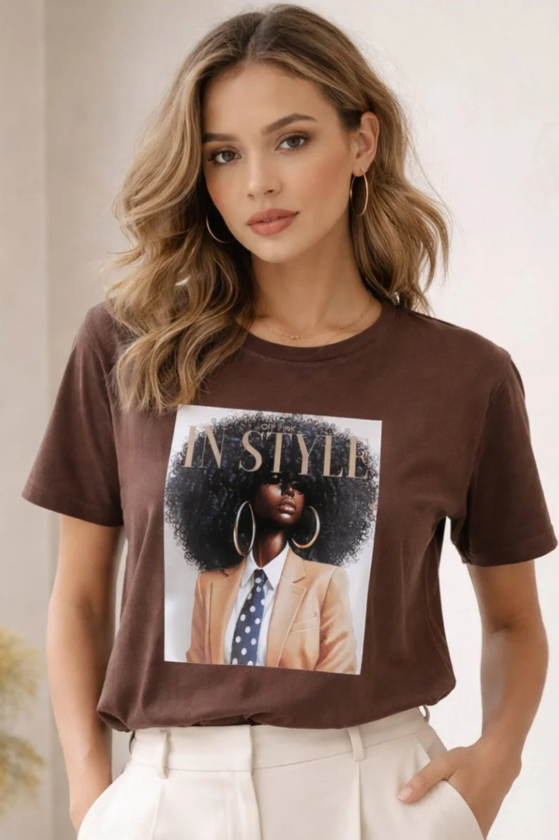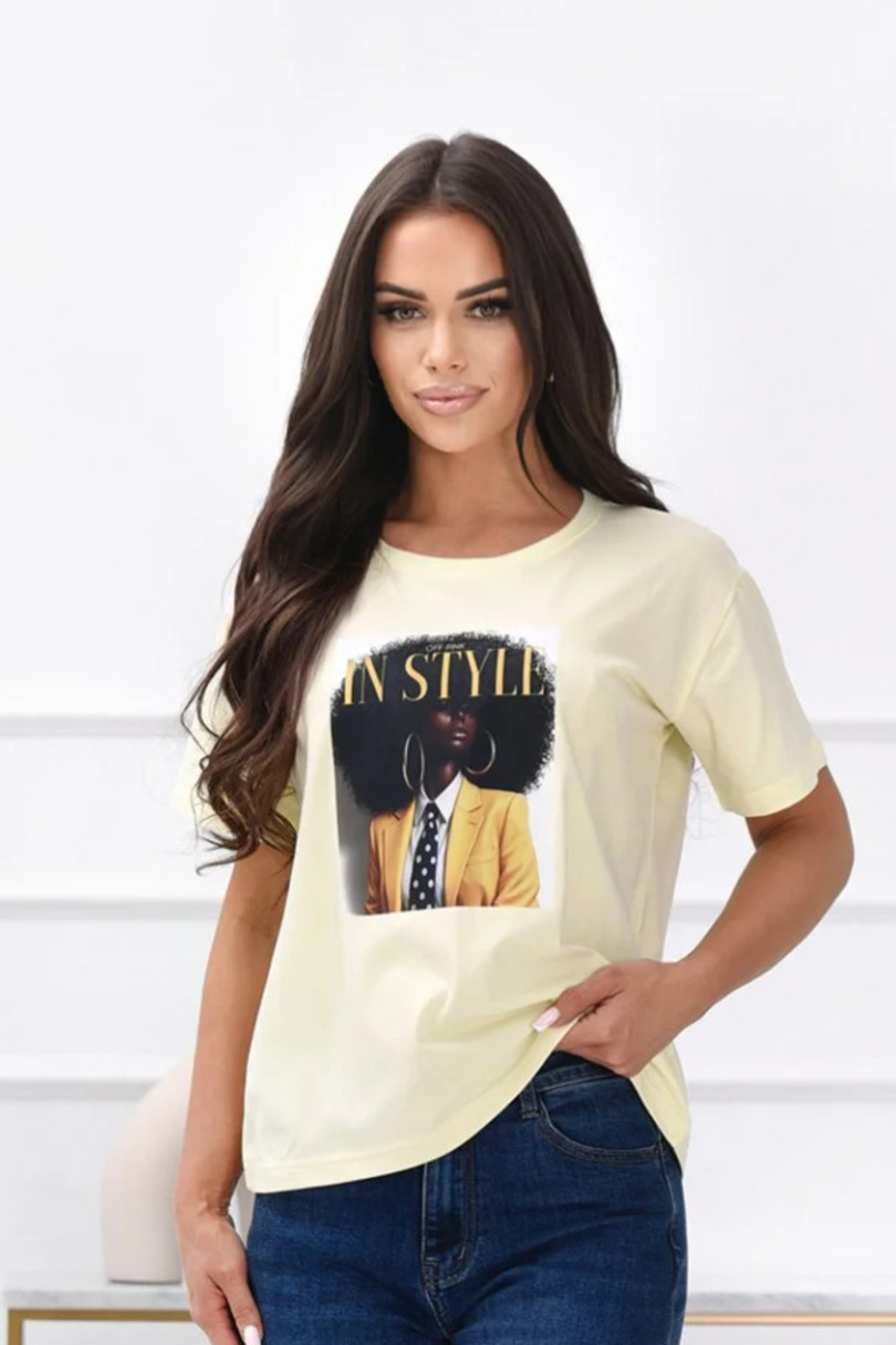 Damski T-shirt Imani z dużym nadrukiem wykonany z miękkiej bawełny z dodatkiem elastanu. Wygodny krój, oddychający materiał i modny design idealny na co dzień.