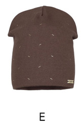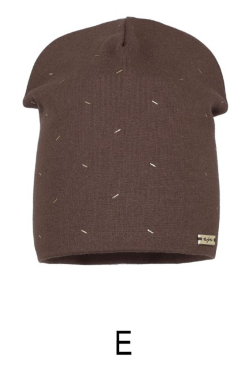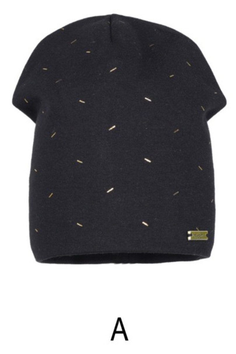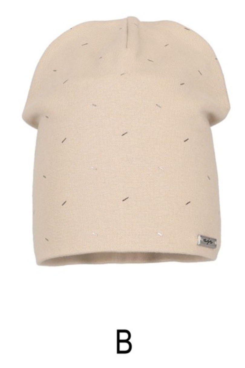 Damska czapka z podwójnej cienkiej bawełny z dodatkiem elastanu. Lekko wydłużony krój i delikatny złoty nadruk zapewniają wygodę oraz modny wygląd na co dzień.