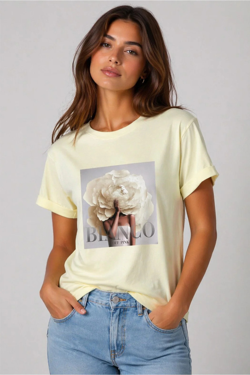 T-shirt z nadrukiem to idealne połączenie subtelnej elegancji i nowoczesnego stylu. Delikatny motyw kwiatu w zestawieniu z minimalistycznym, eleganckim napisem tworzy wyjątkowy design, który przyciąga uwagę, a jednocześnie pozostaje ponadczasowy. Koszulka doskonale wpisuje się w aktualne trendy modowe, zachowując uniwersalny charakter, dzięki czemu sprawdzi się w wielu stylizacjach. Wykonana z wysokiej jakości, miękkiej bawełny, gwarantuje komfort noszenia przez cały dzień – zarówno w pracy, jak i podczas codziennych aktywności. Luźniejszy krój zapewnia swobodę ruchów oraz świetne dopasowanie do różnych sylwetek. To doskonały wybór dla osób ceniących wygodę, styl i jakość w jednym.