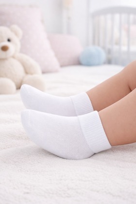 Gładkie skarpety dziecięce WOLA dla dzieci 0–2 lata. Wysoka zawartość bawełny zapewnia komfort i delikatność, a elastyczny materiał idealnie dopasowuje się do stopy.