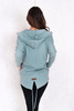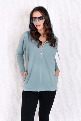 Bluza damska rozpinana z kapturem. Rękawy ściągaczowe, tył bluzy wydłużony z pęknięciem i sznurkiem. Skład: 95% bawełna, 5% elastan
