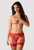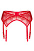 Pas do pończoch z gustowną koronką. Złote detale znakomicie komponują się z intensywnym odcieniem czerwieni. Haftki z tyłu oraz paski z możliwością regulacji gwarantują znakomite dopasowanie.