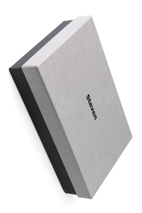 Pudełko 9 PAK, ozdobne wykonane z tektury w kolorze czarnym z szarą lub bordową pokrywką.