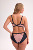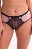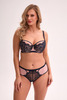 Eleganckie figi z koronkowym przodem i tiulowym tyłem w odcieniach granatu i pudrowego różu. Zmysłowy design i komfort noszenia.