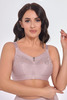 Biustonosz bez fiszbin dla kobiet z większym biustem. Z przodu zamek, koronka, szerokie ramiączka i komfortowa, miękka konstrukcja.