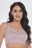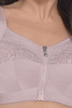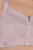 Biustonosz bez fiszbin dla kobiet z większym biustem. Z przodu zamek, koronka, szerokie ramiączka i komfortowa, miękka konstrukcja.