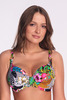 Miękki biustonosz kąpielowy bez usztywnienia z kolorowym, tropikalnym printem i regulowanymi ramiączkami. Komfortowy, lekki i pełen wakacyjnego stylu.