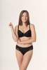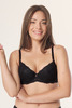 Elegancki biustonosz push-up z czarnej koronki z wyjmowanymi wkładkami, bawełnianą wyściółką i odpinanymi ramiączkami. Stabilny, komfortowy i pięknie modelujący biust.