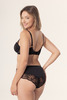 Szorty damskie z gładkiej mikrofibry i ażurowej koronki, w pełnym, zabudowanym kroju. Wygodne, eleganckie i doskonałe do codziennego noszenia.