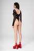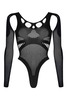 Czarne body Love Rave z siateczki – geometryczne wzory, długie rękawy i elastyczny materiał. Seksowny styl na festiwal i wieczorne wyjścia.