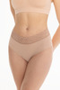 Wysokie figi damskie typu brazyliany z bawełny (85%) z dodatkiem elastanu. Gładkie, z elegancką koronką, komfortowe i idealnie dopasowane do sylwetki.