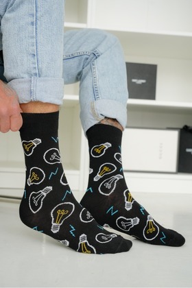 Wzorzyste skarpetki męskie MILENA 0125.138 z motywem żarówek. Bawełniane, wygodne i elastyczne, z płaskimi szwami zapewniającymi komfort noszenia przez cały dzień.