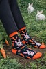 Skarpetki męskie Milena Króliki i Marchewki 0125.019 z zabawnym wzorem królików i marchewek. Bawełna 75%, elegancki model garniturowy – wygodny, elastyczny i stylowy.